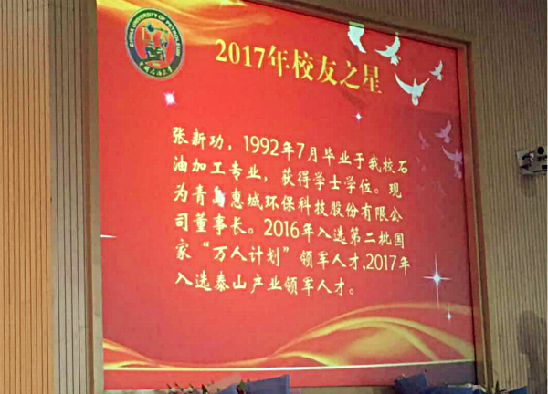 日前,我公司董事長張新功獲評中國石油大學(華東)“校友之星”榮譽稱號。10月2日,張新功董事長受邀出席“追求卓越、砥礪前行”主題校友返校日慶祝大會并接受“校友之星”榮譽表彰。大會共表彰了9位在本職崗位上勇于開拓、不斷創新、業績卓越、為國家發展建設做出重大貢獻的杰出校友。