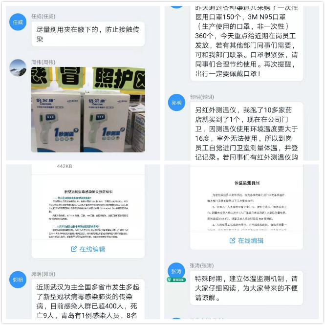 HSE管理部的牽頭組織下,在各部門的大力配合下,公司迅速制定了企業疫情防控方案,建立了返青人員管理機制、消毒機制、體溫測量機制、餐食管理機制、每日重要信息匯報機制和異常員工隔離區等防控措施;加大日常疾控宣傳,通過持續發布釘釘群公告、張貼疫情防控標語等形式做好防控宣傳。欣隆物業嚴格做好每日的現場消毒、門衛值守和體溫監測等工作,春節期間,在物流停運、消毒產品供應有限的情況下,物業人員聯合各相關部門人員奔波采購防疫物資,眾志成城戰疫情,為廣大員工提供了安全的環境保障。