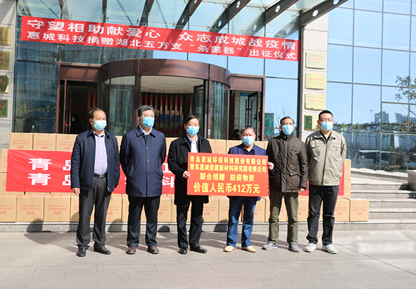 ? ?? ?愛心匯聚,暖流涌動。3月11日上午,惠城環保捐贈湖北5萬支“殺菌器”出征儀式在公司研發大樓前隆重舉行。參加此次活動的有青島市總工會、西海岸新區工會、西海岸新區慈善總會以及公司部分領導和員工,他們用自己的實際行動將一箱箱承載著愛心的防疫物資裝車出征。