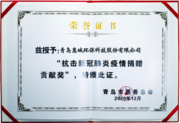 惠城環保榮獲 “抗擊新冠肺炎疫情捐贈貢獻獎”