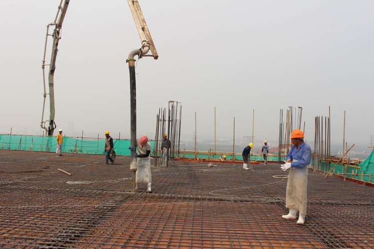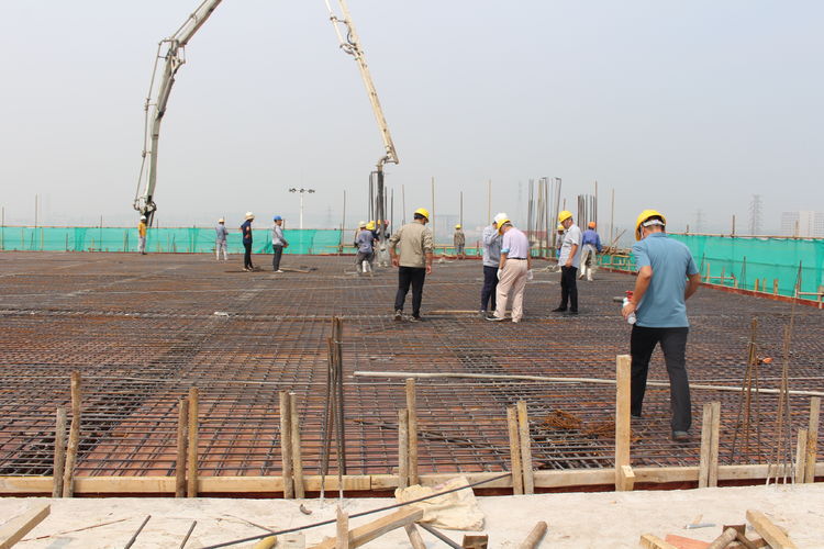 在施工單位的帶領(lǐng)下,公司領(lǐng)導(dǎo)來到分子篩廠房頂層參觀建設(shè)情況。分子篩廠房建筑面積22308㎡,是整個(gè)項(xiàng)目中面積最大、工程量最大、施工難度最大,設(shè)計(jì)、工藝最復(fù)雜的建筑單體。在臺風(fēng)、高溫極端天氣及交叉作業(yè)、疫情等諸多不利因素影響下,為加快推進(jìn)建設(shè)進(jìn)程,項(xiàng)目建設(shè)指揮部全體成員放棄節(jié)假日休息,以“5+2”、“白+黑”的戰(zhàn)斗精神,全部深入一線進(jìn)行質(zhì)量檢查和安全督導(dǎo),他們迎難而上、披荊斬棘,是惠城精神的真實(shí)寫照;施工單位增加人員、機(jī)械設(shè)備,安排工人三班倒作業(yè),保證施工現(xiàn)場24小時(shí)不停工;監(jiān)理、勘察、造價(jià)等參建單位加班加點(diǎn),“隨叫隨到,不叫也到”......各方精誠合作,共同推進(jìn),終于迎來了8月10日這一封頂時(shí)刻。