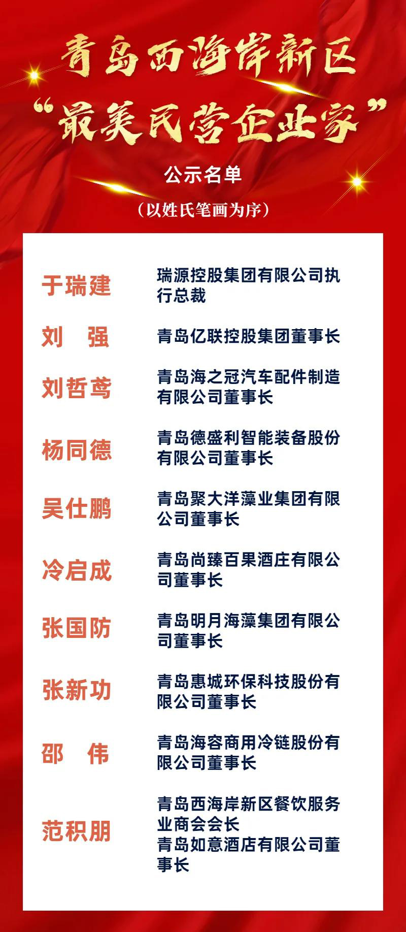 近日,工委區(qū)委統(tǒng)戰(zhàn)部、工委區(qū)委宣傳部、區(qū)工商業(yè)聯(lián)合會(huì)(區(qū)民營(yíng)經(jīng)濟(jì)發(fā)展局)聯(lián)合開(kāi)展青島西海岸新區(qū)“最美民營(yíng)企業(yè)家”評(píng)選活動(dòng)。經(jīng)過(guò)廣泛宣傳發(fā)動(dòng)、優(yōu)秀典型推薦、綜合評(píng)價(jià)、聯(lián)合評(píng)分等程序,評(píng)選出10名青島西海岸新區(qū)“最美民營(yíng)企業(yè)家”,青島惠城環(huán)保科技股份有限公司董事長(zhǎng)、總經(jīng)理張新功入選。