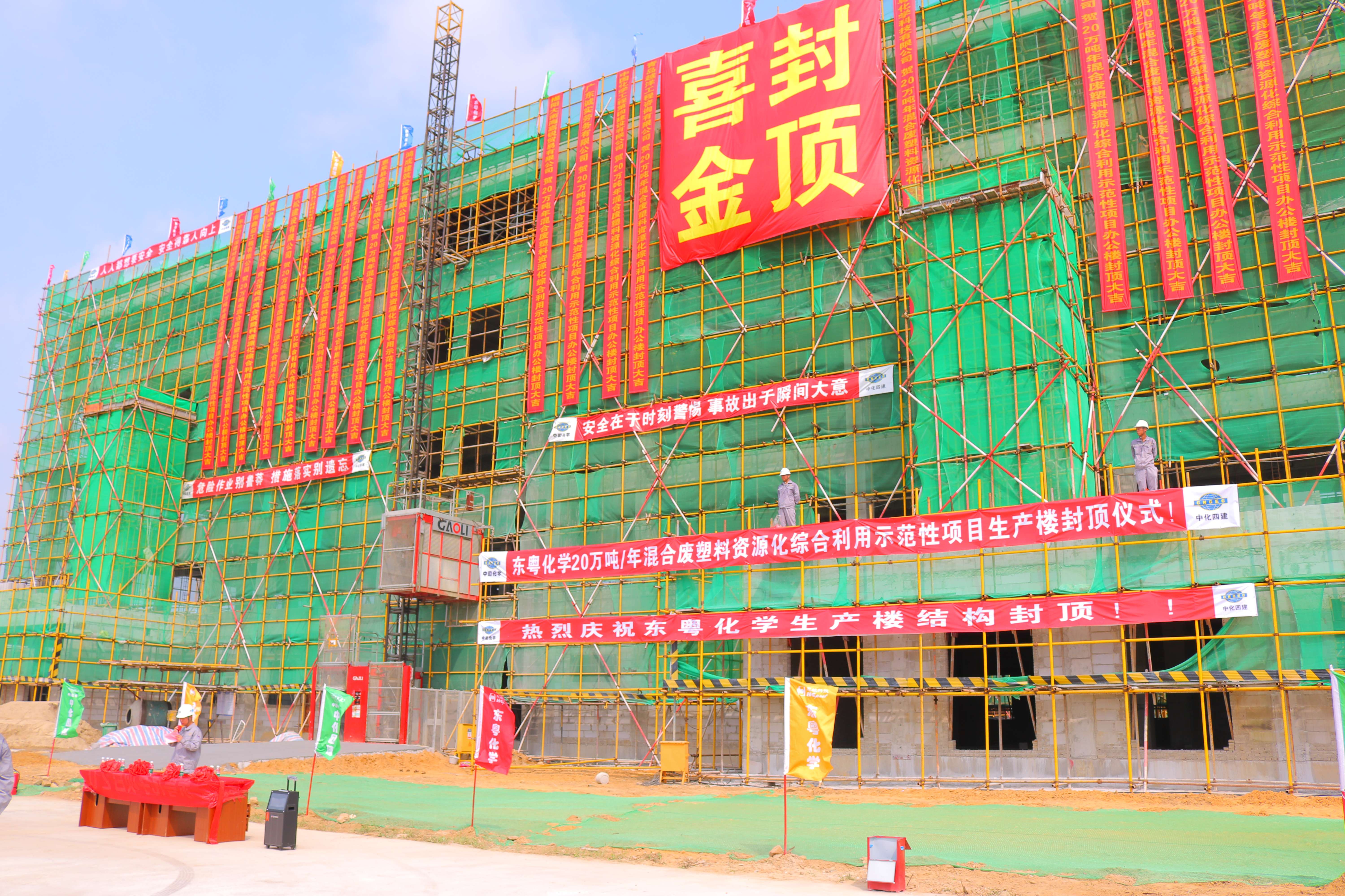時風澍雨釀花天,吉日良辰喜報連。8月8日,隨著最后一段頂板混凝土完成澆筑,20萬噸/年混合廢塑料資源化綜合利用示范性項目辦公樓結構喜封金頂,標志著項目階段性節點順利完成,為年底建成投產奠定了堅實基礎。惠城環保集團子公司廣東東粵化學科技有限公司總經理李恩泉、中國化學工程第四建設有限公司華南分公司黨委書記尋飛躍、廣州石化建設監理有限公司總監理工程師盛筠等領導出席封頂儀式。