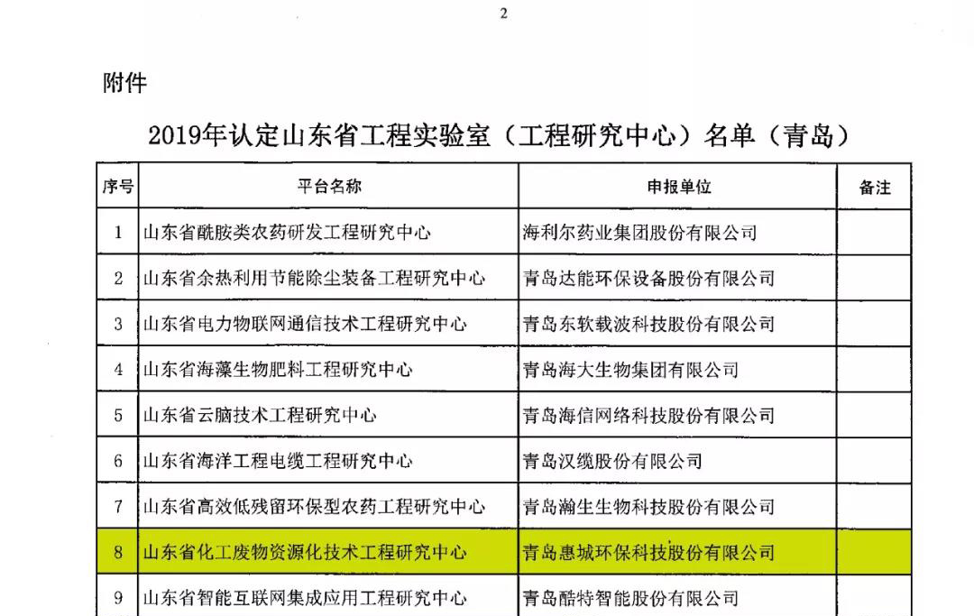 日前,根據(jù)山東省發(fā)展和改革委《關(guān)于公布2019年認(rèn)定山東省工程實(shí)驗(yàn)室(工程研究中心)名單的通知》(魯發(fā)改高技〔2019〕360號(hào))發(fā)布文件,我公司申報(bào)的省級(jí)工程研究中心獲批并被認(rèn)定為山東省化工廢物資源化技術(shù)工程研究中心。[ 查看更多 ]