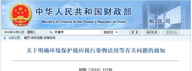 日前,財政部、稅務總局、生態環境部聯合印發通知,明確環境保護稅應稅污染物適用等問題。