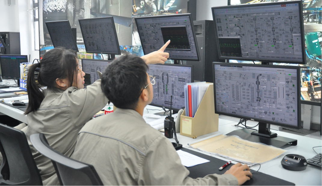 巾幗不讓須眉,生產部的女孩子們也積極投入到培訓學習當中。除了要到現場學習,她們還需要在中控室及時監控和調整參數,迅速發現和處理特殊情況,及時與現場操作人員聯系。
